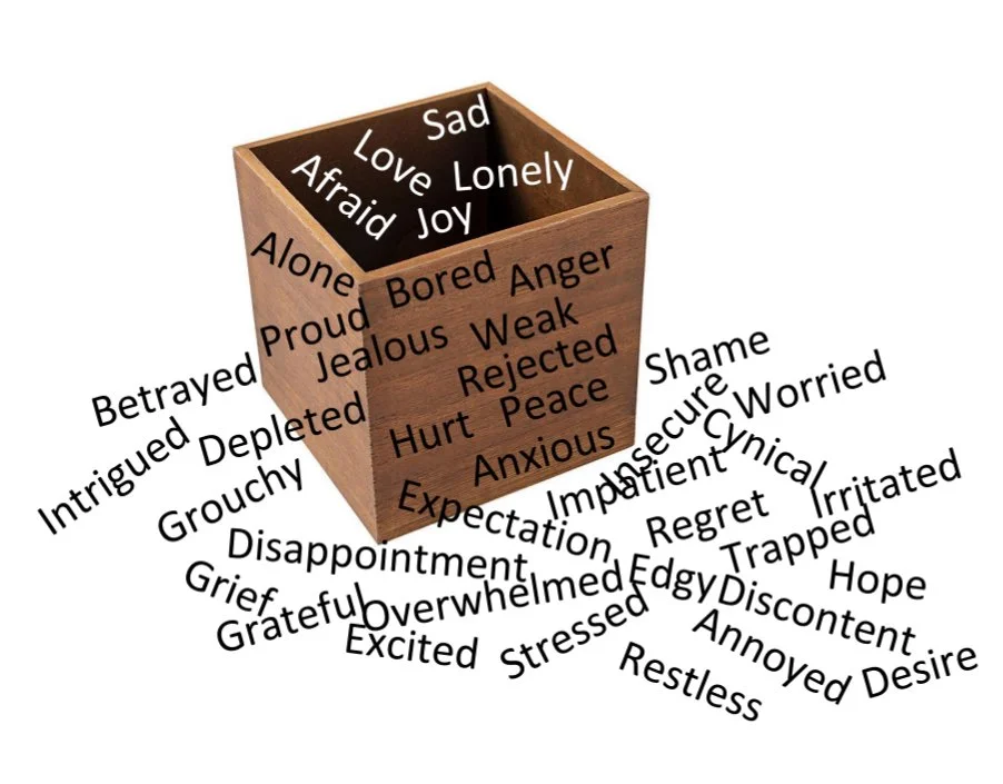 One day in my therapy office, while explaining a concept to a couple, I reached for a decorative wooden cover that sits over a Kleenex box — a staple in any therapy room. I turned it upside down and said, “We each carry one of these. An emotional box.”